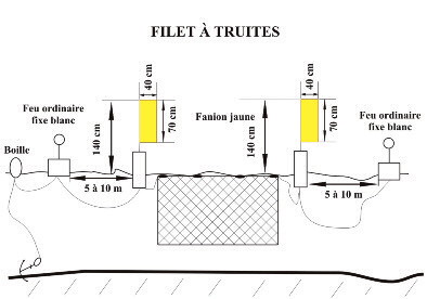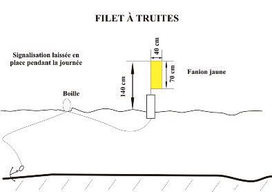 Le navigateur ne devrait pouvoir observer le marquage du filet à truite que pendant la période séparant l’ouverture de la pêche aux salmonidés du 31 mars et ce, de 16h00 à 09h00.