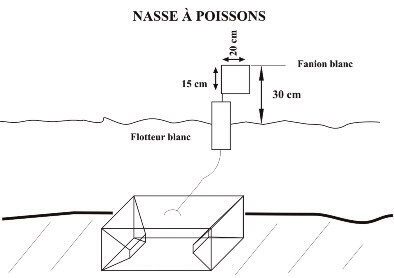 Le sommet de la nasse doit être recouvert de 2 mètres d’eau au minimum.