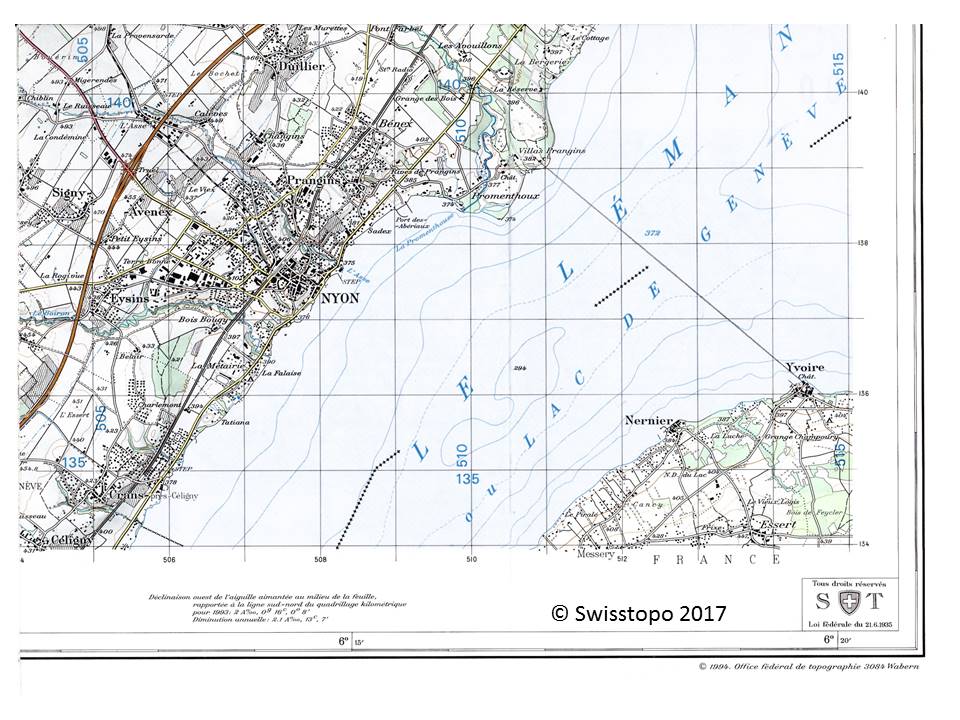 La ligne reliant le clocher de l’église d’Yvoire à la Villa Prangins (Club-house du golf) constitue la limite entre Petit-Lac et Grand-Lac.